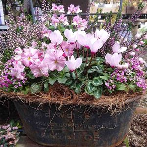 1ヵ月前に作った寄せ植え 最近は早朝の気温がマイナスになってますが、寒さにも全く動じず元気に育ってます! 強い霜が当たってますが、さすが軽井沢育ちのガーデンシクラメン! 品種では無く、生産過程が違います! 桐生ふぁーむさんオリジナルビオラ“乙女ごころ”の絞りの花色とシクラメンのバイカラーの花色をリンクさせてみました。 後方に使った兵庫県加西市の花芳さんのネメシアは、他のネメシアと比べて花持ちが抜群です。 鉢の両端に植えたアリッサムは、2つに株分けできる兵庫県龍野市のY'sloopさんの良品です。 株分けのダメージも全く無く非常に元気です! ピンク一色で作った寄せ植えですが、結構好評です! 女性目線で作りましたが、いかがでしょうか? 使用した植物は、 軽井沢育ちガーデンシクラメン“ジャドール”、神戸べっぴんさん“乙女ごころ”、宿根ネメシア“マリーピンク”、カルーナ“ガーデンガールズ”、ペルネッティア“ハッピーベリー”、アイスクリッサム“ストロベリー”です。 #夢と緑を運ぶ店ホピー#有限会社鈴蘭園#神戸市北区#園芸店#花屋#ガーデニング#花のある暮らし#植物のある暮らし#花好きと繋がりたい#神戸から発信#寄せ植え#軽井沢育ちガーデンシクラメン#ジャドール#神戸べっぴんさん#乙女ごころ#宿根ネメシア#マリーピンク#カルーナ#ガーデンガールズ#ペルネッティア#ハッピーベリー#アイスクリッサム#ストロベリー