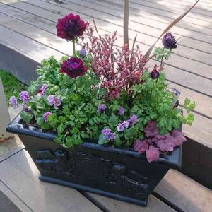 アネモネ“パンドラ・タブルワイン”を使ってシックに! 大人っぽいワインカラーのアネモネを中心に寄せ植えを作りました。 主役はもちろんアネモネ。 背景と脇役にニューサイランとロフォミルタス、ヒューケラを使って、フリフリの花のぞうさんビオラの新色で上品な華やかさを加えました。 植木鉢は塗装したブラックエンジェルのテラコッタを使用しました。 アネモネの花が開くと随分印象が変わりました! 個人的にアネモネは蕾の時が1番好きですが、開ききった花の中心部のメタリックパープルの色も綺麗ですよ! 使用した植物は、 八重咲きアネモネ“パンドラ・タブルワイン”、ニューサイラン“ブロンズベイビー”、ロフォミルタス“マジックドラゴン”、ぞうさんビオラ、ヒューケラ“ジョージアプラム”です。 #夢と緑を運ぶ店ホピー#有限会社鈴蘭園#神戸市北区#園芸店#花屋#ガーデニング#花ののある暮らし#植物のある暮らし#花好きと繋がりたい#神戸から発信#当店お勧め#寄せ植え#八重咲きアネモネ#パンドラ・タブルワイン#ニューサイラン#ブロンズベイビー#ロフォミルタス#マジックドラゴン#ぞうさんビオラ#ヒューケラ#ジョージアプラム @ ホピー鈴蘭園