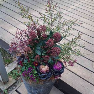 葉牡丹の寄せ植えボチボチ始めました! 12月もいよいよ残り半分。 今日は寒かったですが、今年は比較的暖かい日が続いているので、まだまだ年末感を感じれないのは僕だけでしょうか? (↑仕事が残っているのでそう思う様にしている(笑)) 毎年大人気の群馬県お勧め生産農家Kーplantsの久保田高生氏(@k_plants0728) の生産するオシャレな葉牡丹を使ってスタイリッシュに寄せ植えしました。 年数の経ったグラスファイバーのコンテナに馴染んで良い感じになりました。 皆さんも玄関前に葉牡丹の寄せ植えはいかがですか? 使用した植物は、 レプトスペルマム“カッパーグロウ”、ロフォミルタス“マジックドラゴン”#スキミア“ルベラ”、ヘーベ“ハートブレイカー”#葉牡丹“ヴィンテージベイン”#ビーツ“ブルズブラッド”#庭人ヴィオラ“乙女ごころ”、大輪アリッサム“クリアクリスタル・パープルシェード”てす。 #夢と緑を運ぶ店ホピー#有限会社鈴蘭園#神戸市北区#園芸店#花屋#ガーデニング#花のある暮らし#植物のある暮らし#花好きと繋がりたい#寄せ植え#当店お勧め#kーplants #久保田高生#レプトスペルマム#カッパーグロウ#ロフォミルタス#マジックドラゴン#スキミア#ルベラ#ヘーベ#ハートブレイカー#葉牡丹#ヴィンテージベイン#ビーツ#ブルズブラッド#庭人ヴィオラ#乙女ごころ#大輪アリッサム#クリアクリスタル・パープルシェード#神戸から発信 @ ホピー鈴蘭園
