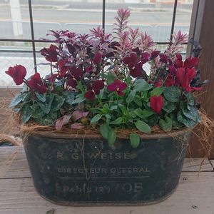 明日の午前中で仕事納め 今年も明日が最後の営業日。 何故か今日は寄せ植えモードで沢山作りました(笑) 写真の寄せ植えは1か月前に作った寄せ植え。 何か個人的にクリスマスっぽいイメージ(笑) アップするのが少し遅かった(笑) 使用した植物は、 ヘーベ“ハートブレイカー”、斑入りキンギョソウ“ブランルージュ”、ビーツ“ブルズブラッド”、ガーデンシクラメン“ショコラ”、うえたオリジナルビオラ“パピヨンワールド”、アジュガ“ディクシーチップ”です。 明日は歳末セール最終日。 沢山のご来店心よりお待ちしております! #夢と緑を運ぶ店ホピー#有限会社鈴蘭園#神戸市北区#園芸店#花屋#ガーデニング#花のある暮らし#植物のある暮らし#花好きと繋がりたい#神戸から発信#寄せ植え#当店お勧め#歳末セール#ヘーベ#ハートブレイカー#斑入りキンギョソウ#ブランルージュ#ビーツ#ブルズブラッド#ガーデンシクラメン#ショコラ#うえたオリジナルビオラ#パピヨンワールド#アジュガ#ディクシーチップ