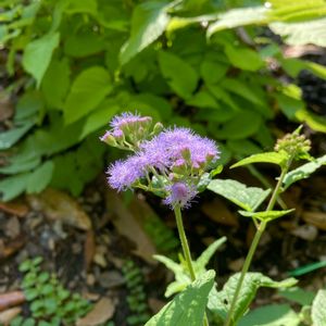 毎年咲くアゲラタム💜 年々紫色が薄くなっている気がします…😢 追記: アゲラタムと思っていましたが… アゲラタムは一年草でこぼれ種で毎年咲く事もある様です。 ユーパトリウムは宿根草だそうで、ウチのは細い白い根から発芽しているようなのでユーパトリウムなのではと思いはじめてます💡 葉が丸いのがアゲラタムでちょっとシャープなのがユーパトリウムのようです。