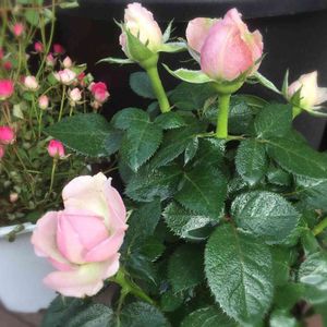 ミニバラ プリンセスオブインフィニティ いただき物です。 …がいただいた時にはハダニがついてて。 無事な葉っぱ無いなと判断し、水にドボンして枯れる覚悟で丸裸に。 他の植物に移っても困るし。 5月28日くらいに丸裸にして植え直して、現在こんな感じで新芽が出てきました。 強いな-。頑張れ。