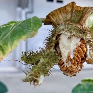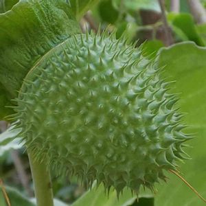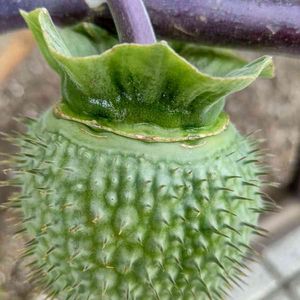 チョウセンアサガオ属 ケチョウセンアサガオ🌱の実 いつの頃からか爺さんちにはこんな子も居ます。ナス科の植物で薬にもなるけど毒性が強いので間違っても口に入れちゃいけないんですけど、抜いても抜いても毎年生えてきます😅💦 それでも花は良い香りがして、何よりこの、なんとも言えないタネのフォルムが大好きなんです🎶 🌧25℃/23℃💎💎