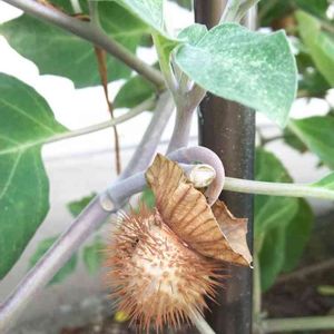 毛朝鮮朝顔の実 ヘタが反り返っている。 3㎝程ある。 いつ、割れても、おかしくないかな。 ハリセンボンを思い出す。