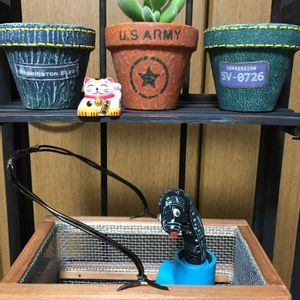 木工市終わり、帰りにはいつも私物が増えてる😅 欲しかったくまさん、23番引きましたよ✌️ あの渋い鉢もゲット。 ありがとうございました🙇 今日はチンアナゴ君も連れてきました😁