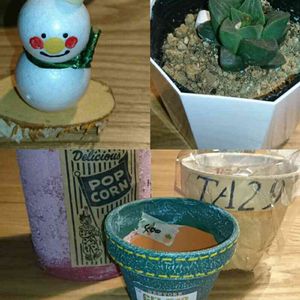 木工市でお迎えした Happyな仲間たち♡ ハルさんのクリスマス鉢には 持っていたウジョンを♡ グリーンの鉢は ペンデンスとセットでお迎え 可愛いキノコピックと雪だるま♡ YUKIさんのロボレンジャーも見守ってくれてます