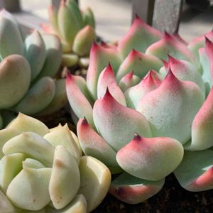 桃太郎♡ 何ヶ月か前の木工市でお迎えした子💕 双頭でぎゅうぎゅうだったので おひとり様と寄せ植えに分けました つぶれて形がイマイチだった子が 寄せ植えの中で美人さんになったよ❣️