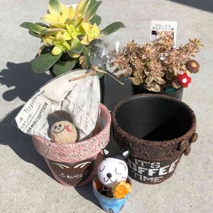 こんばんは〜 昨日の幸田木工市での戦利品✨ 大阪からMerryBellさんが来てくれました〜🎶愛知にようこそ💕 (上)車の中に可愛い多肉ちゃんや雑貨がいっぱい❤️感動しました✨参考にしたい寄せ植えばかり😆 (左下)MerryBellさんの寄せ植えゲット❣️かわいくギュッ💕綺麗な仕上がりです🎶勉強になります😆 (右下)mokoさんのチョコレートポップコーン鉢🍿、ハートと🐼チョコレートピック❤️ 可愛さ間違いない😆✨ チョコレートピックはラスト1でした〜良かった😊 皆さんお疲れ様でしたー