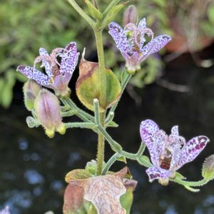 今日のお花 ホトトギス (斑入りホトトギス) ユリ科 ホトトギス属 野草観察会の方から頂いた斑入りホトトギスですが猛暑で葉が傷んでしまって斑入りの葉が分かりにくいですネ💦 🏷️2025秋の十草 1枚目 参加させていただきます