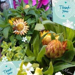 ホームセンターの見切り品コーナーで、可愛いタグ(picの背景)が目に入り、思わず手に取りました💛 コロロ・レモン(キク科ムギワラギク属) ドライフラワーみたいな不思議な感触のお花が咲くとのこと🎶 早速植え替えて、窓辺で養生してもらってます☺️