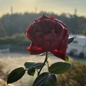 ①黒赤の薔薇、ルイスキャロルをカットして飾っています🌹 花の中心付近が内側に向かって巻き込み、ボタンの様に見える事からボタンアイとも呼ばれる薔薇です 可愛いです😍 シルバーの蝶々の飾りは以前に手作りアクセサリーを買った時に付けてくれたもの🦋 ②今朝も10月なのに朝から強めの日差しが差すベランダで原坊の朝顔咲いています💙 朝の楽しみです 今日も暑そう(・・;)