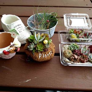 日曜日の「多肉とみどりのマルシェ」の戦利品😀 靴の鉢、かわいい〜 他にも鉢が空いてるので、多肉弁当を買いました👌 初めてチランジアも買いました。枯らさないように霧吹きシュッシュッします🙆