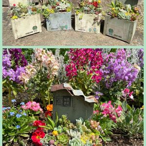多肉とみどりのマルシェ🍀 パート2✨ 朝一番はお買い物を楽しみ💕 お昼ごろWSに参加しました 屋根付き木箱に寄植え🌿 多肉入れ放題の太っ腹なWS も〜お腹いっぱい詰め込みましたよ〜😁 お家に帰ってから、早速カット苗や多肉弁当を使って1人WS(笑) mamakoさんの可愛いお家鉢 小鳥のピックもついて可愛いです🐦 可愛い多肉も詰め込んでモリモリです💖