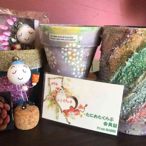 昨日は名古屋フラリエの「多肉とみどりのマルシェ」へ行ってきました🎶 大好きなハピコロちゃんとHTCのタニコロ社長の夜桜お七風リメ缶🌸をお迎えしました💓GSのユーザーはピンクルルビーのおまけまで頂けて、すごく得した気分😋 cottun5 さんにもお会いできて、ちょっと感動でした😍 こっつんハウスの頃から大ファンで、picを見る度に幸せな気分に浸っていたので、ご本人にお会い出来て嬉しかったです💕 それから「たにおたくらぶ」のBABBIちゃんブースへ行って、初めましてのご挨拶をして会員証を頂きました😍 ちるや笛子さんのタンポポ鉢とBABBIちゃんのリメ鉢もお迎え❣️ 昼近くに一人でふらっと行きましたが、顔見知りの人も沢山いらしてて、WSを見学したり話をしたりと、楽しいひとときでした。
