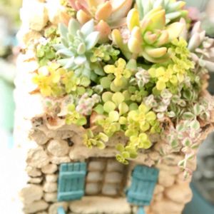 sweetbasketちゃんのリメ缶にアエオニウム。 とってもお似合い♡ sweetbasketちゃんは今日もイベント出店。 頑張ってるかなぁ〜😊