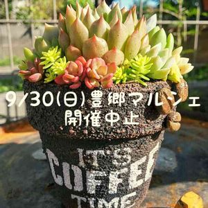 9/30(日)に出店を予定しておりましたが、大型台風⚡🌀☔接近のため、開催中止となりました(>_<)🌀 遊びに行くよって言ってくださった皆さん、ホントにゴメンナサイ🙏💦💦 次のイベント出店は、10/6(木)~7(日)メタセコイアマーケットです❤ どうかお天気に恵まれますように~😆 名古屋フラリエ、多肉とみどりのマルシェも、たくさんの方に行くよ~って声かけていただいてます❤ 7人全員楽しみにしていますネ~(❁ᴗ͈ˬᴗ͈)⁾⁾⁾ᵖᵉᵏᵒ