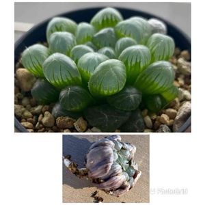 ハオルチア オブツーサ 21年の11月マルシェで下の子をオマケで頂き、一年半で良い形に成長しました👍 ⬆️23年 3月 ⬇️21年11月