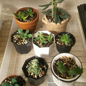 今日、植え替えをした多肉達 買ったばかりの子もいるけど、 徒長とか根腐れが原因で植え替えしたのが多いから、今後が心配(ノ_・。) しばらくは室内で様子見