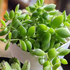 気持ちよい日差し\(ϋ)/♩ 先月ひとめぼれ♡で お迎えした💚ペンデンス💚 プックリ♪可愛いコ(*´︶`*) 小さな葉っぱがあちこち♪ 色々調べてみると。。 何だかクサイ多肉さんらしい🔎 クンクン🤭ちょっと独特なニオイ(笑) ベル🔔のような🐙のような お花も楽しみ(*˘︶˘*).。*♡