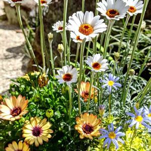 とっても良い天気☀✨✨ お日さまとっても気持ちいいね♡ だんだんお花咲いてきた♬ ブルーデージーも💙 オステオさんも💛 みんな うれしいな(>ω<)♪ 今日は下のコ卒業式前の💇✨ 美容室のブルーデージー💙 どうなったかな?? スノーマン⛄いないかな?