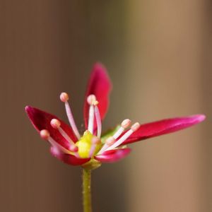 おはようございます。 大文字草祭🏮👘✨FINAL❣️ ⬆️ (浴衣は風邪引くよ🤧) 11月7日、今日のお花がダイモンジソウだった日に、蕾を投稿した「光栄」ちゃんがやっと咲きました。濃い〜赤のぽってりした花びらです😄 苔が付いた軽石鉢に植えました。しかし、家主が表(写真5枚目)と思っている方には咲かず、裏側(写真4枚目)を向いて咲きましたよ😅…お主も悪よのう😎 後程、みどりのまとめに追加しようと思います。