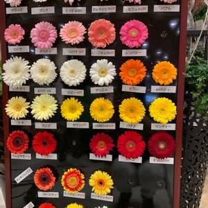 新しいお花屋さんで見つけたガーベラの標本?😳みんな名前がついていました😆✨ 可愛い😍✨