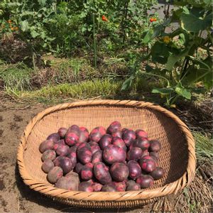 放置していた過去picより記録用_φ(・_・ 6/20 デストロイヤー掘り 1株だけそうか病(左)艶がない… 大雨で諦めかけていたけど、掘ってみたら何てことありませんでした😊 美味しすぎるこのジャガイモ、おすそわけ後もさらに催促♡すぐ無くなりました💕