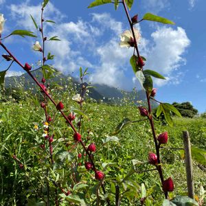 空に向かってどんどん伸びるローゼル💓 実を収穫して、ハイビスカスティー🌺とローゼルジャムにしました♪ さわやかな酸味が最高です👍