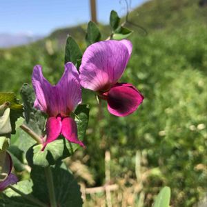 蝶々のようなキヌサヤえんどうの花✨😃 初めてつくるキヌサヤ🌱 冬越しできるか心配だったけど なんとか持ちこたえて 実もつけてくれてうれしいな😆