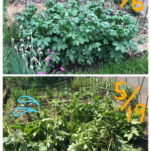 記録用_φ(・_・ 5/6 混植・作業記録 & トホホ日記 ★区画1 極早生エダマメ(サッポロミドリ)種まき ニンジン種まき待ち ★区画2 極早生エダマメ(サッポロミドリ)種まき ジャンボピーマン パプリカ(白) 甘長ししとう ★区画3 落花生(おおまさり)種まき ナス(肥後ムラサキ・肥後長茄子) ★区画4 落花生(おおまさり)種まき ミニトマト(フラガール)植え付け 長女苗植え付け待ち ★区画5 じゃがいも(デストロイヤー)土寄せ ★区画6 きゅうり(耐病)植え付け 落花生(おおまさり)種まき ★区画7 スイカ(ピノガール)2株植え付け オクラ(白丸)種まき 極早生エダマメ(サッポロミドリ)種まき ★区画8 玉ねぎ晩生そのまま ★区画9 かぼちゃ草マルチ ★すみっこ 長ネギ土寄せ にんにく芽収穫もうすぐ アスパラガスそのまま みょうがそのまま ★全体 マリーゴールド定植 花コーナーにミニひまわり定植 夏の畑は支柱だらけになりますね😂 ジャガイモ(デストロイヤー)のお花が咲きました🌸 草マルチも充実してきて、徐々に自然農の雰囲気が✨ …と気持ち良く作業を終えて帰る予定でした… 異変は、日焼け予防の長袖上着のファスナーが壊れて外れなくなってしまった朝から始まっていました… 畑仕事が終わり、心地よい疲れのなか手袋を取ったところ…袖の中で手首がチクッ💥 え?蚊?と思い、見えなかったけどとっさにパチンと潰したら、さらに激痛💥💥💥 この激痛と、袖が黄緑になったことからして、おそらくイラガ…😱 潰してしまったため、毒毛がいっぱいめり込んだのかみるみる腫れて、痛い痛い痛い😫‼️ 指先まで痺れてきたぁっ‼️ とりあえず流水で冷やさなきゃ‼️ 早く脱がなきゃ‼️ あぁっファスナーが壊れて上着が脱げない😫💦💦 あっポケットの携帯忘れてた‼️濡れる😫💦 ああっ‼️上着脱いだら蕁麻疹出るんだった‼️(紫外線アレルギーなので) …と、パニック💦💦💦 今までで1番痛ーーーい毛虫事件でした😢 皆さまも十分に十分にお気をつけくださいませ〜😰💦💦 コメントのお返事が遅くなっていてスミマセン🙏
