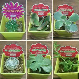 先週、いつものダイソーに寄ってうちに居ないコもいたのでお迎えして来た。 ミニサボテン?なのにプラ鉢にパンパンに詰められているので可笑しくてサボテン🌵も一緒に。 セダムは多分、乙女心かな? エケベリア属っていうこれはなんだろう? 綴化ちゃんの隣にオマケが付いてきているのはカリシアぽいんですよね。ちょうど根っこが1本伸びていたんでそのまま様子見。