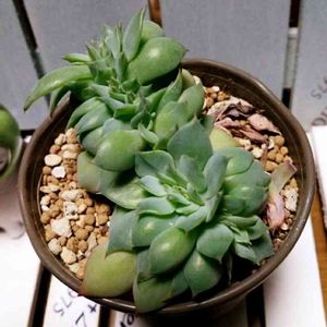 5月に寄せ植えした子✨ 大きくなって 鉢の縁に沿って 張りついちゃった 広がりたそうだったので このあと植え替えました 下葉がカリカリっと 枯れていて ペリペリ剥がしました よーく見ると 中心が2つ⁉ このあとどおなるのかなぁ✨