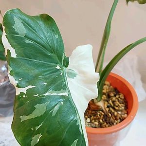 沖縄 フリマで見つけた 🍀斑入り クワズイモ 🍀アロカシア ポルティ 調べたら かなりの巨大種みたいよ 鉢で調節かな💦 🍀最後は メルのオークションで 超特価 兜丸君 チョットだけ 下の方が 形が悪いけどすごく可愛いよ😀 楽しみだな(#^.^#)