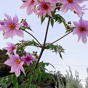 🩷姫月下美人に 花芽があがってきました 寒くなったので 室内に入れようと防虫処理💦 カメムシ臭い😱 枝が長く伸びて ひと夏で大きく育ちました(≧∇≦)b 🩷皇帝ダリア この前の木枯らし一号で 倒れてしまい 悲惨なのですが花芽がついてるので切り倒さず 花を咲かせてあげてます 🩷芙蓉の苗が 今頃初開花しました 寒さで ちと ショボいです(#^.^#)