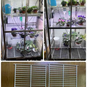 ワーディアンケース(室内ガラス温室) こちらは2台目です😊 1台目は全体的に錆び、隣りに資材置き場に使ってます。 現在セントポーリアと無菌培養を置いています。 灯りが暗いと思ったら、1台目に比べて棚が1段少なかったです😅(最近気がついた) それで棚板を購入しました。 特殊なサイズなので、1段2枚で送料込み5,750円とちょっと高かった😂 このワーディアンケースは廃版なので、そのうち備品も無くなるからしょうがないか😅 植物とライトが近づき、明るくなりました😄