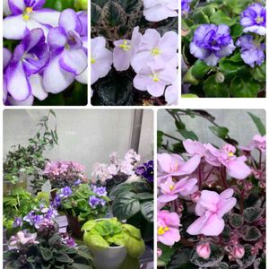 セントポーリア パープル🟣集合🤗 今日のお花がセントポーリア😄 これは投稿せねばと😅 パープル🟣の集合写真😊 上左、名前は分かりません😅4〜5年前からあって、株分けで増え現在3株😆 上右、オプティマラ バルバドス 今年5月購入。 下段、手前2つと左奥は株分けで増えた名無しさん。右奥がバルバドス😊 大株になり、元気に咲いていますよ🎶