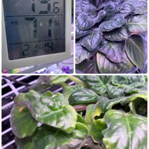 今日のセントポーリア 調子の悪そうな株が3つ😅 下の葉が少し枯れてます😱 この段の2つ下にパネルヒーターがあり、1つ下にはファンがあります。 取り敢えず、棚の下にビニールを敷いて、熱と風が直接当たらないようにしてみます😔