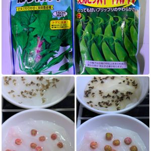春野菜の準備😄 二郎丸ほうれん草と甘いスナップエンドウの芽だし🌱を温室で始めました😊 左が昨日で右が今日。 1日で水を吸って大きくなってます🤗 昨年の種なので、どの位芽が出るか分かりませんが、根が出たらポットに植えて、その後畑に植える予定😋 スナップエンドウは、関東では11月頃植えるのが良いのですが、畑に空きが無く、春植えになりました😅