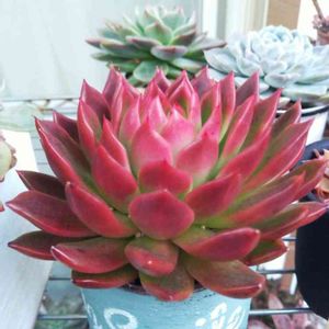 秋にお迎えしたときはまだ明るいグリーンだったけど、今はもう燃えるような赤。 赤いエケベリアとして古くからあるとてもポピュラーな品種。アガボイデスの中でも赤みが強く、寒くなる10月下旬から色づき始め、冬には真っ赤に染まります。漢字表記がいろいろありますが本来の表記は「相府蓮」で「丞想相の蓮」のこと(エケベリア1000種より)。 https://pukubook.jp/detail/Echeveria_agavoides_Soufren #エケベリア #相府蓮 #エケベリア相府蓮 #Echeveria #EcheveriaagavoidesSoufren #多肉 #多肉植物 #多肉図鑑 #succulents #pukubook