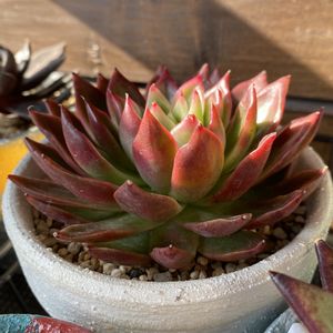 おはようございます☀ 3.5~4号鉢のうちでは大きいエケベリアです💗室内で午後からしか光の入らない2階リビング😅 紅葉は春以降に持ち越しですね😉