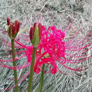 もう、お彼岸の時期ですね。 この花は彼岸花。 散歩中に見つけ😲ました。 いつの間にかスーッと伸びて花火🎇の様にパーっと広がって咲いて✨葉も節も枝もないホント不思議なお花です😎 少しづつ本格的な秋🌾🌰🍄🍇🍂が近づいて👣ますね。皆さん体調🤧😷には気を付けて下さい