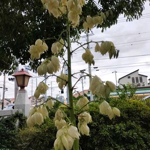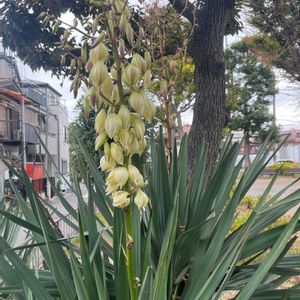 💠キミガヨラン 開花時期は5月〜6月と10月〜11月の年2回で、夕方から夜にかけて開花し、翌日以降も残ります。 ⚫︎キジカクシ科 ユッカ属 ⚫︎原産 メキシコ ⚫︎花期 5月〜6月 10月〜11月