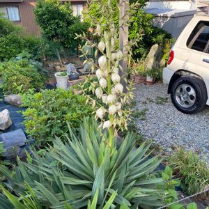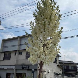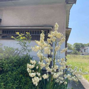 この道暫く通ってなかったら、咲いてから時間が経ってしまったみたいです。 ユッカ(キミガヨラン)