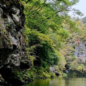 【 猊鼻渓舟下り 】 2kmに及ぶ渓谷が美しいい 高さ100mを超える断崖絶壁が そびえ立つ素晴らしい所 鮮やかな紅葉🍁には早く、中尊寺と同じように色づき始めでした~🎶 2025年 10月21日訪れました