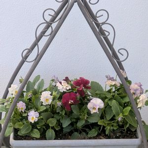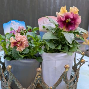 パンビオの寄せ植え 両端はビオラ華あられ真ん中はパンジーのアルバルーチェ🥰