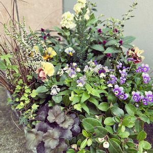 今年のパンビオの寄せ植えはアルバルーチェ、ビオレッタメインに♡ チェッカーベリーのホワイト♡