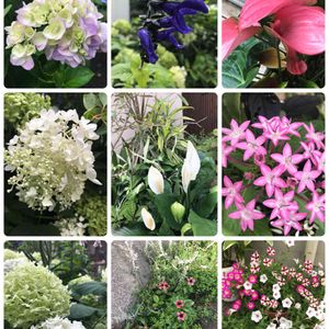 7月のみどりのまとめ 1/2 アナベルが終わりるころ遅咲きのアジサイと、ミナヅキが咲きはじめました お庭は夏のお花に移行して ガラニチカが俄然勢いよく咲きはじめています💕 春からお外管理のスパティフィラムも大きなお花が次々咲いてくれてます😊