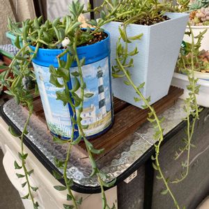 昨年友達にプレゼントした寄せ植え🪴 伸び伸びでどうしたらいいの?て連絡が😥仕立て直ししよか?と持って来てもらったら、こんな姿に〜🤣🤣 仕立て直し甲斐があります💪可愛くするぞー😍