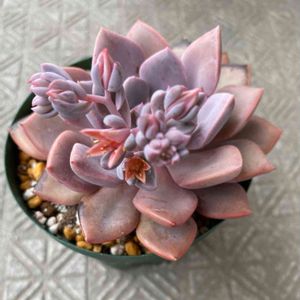 今年もベレンの花が咲きました🌸 お水厳しめで、だいぶ小さくなりました😅子株は写ってない子がもう一つ隠れています😍 昨年ひとり立ちした子株3兄弟は3人とも葉焼けしてコゲコゲ〜😅💦 今年は天候が不安定過ぎて、天気予報も当たらず、雨だと思っていても、めちゃ晴れてるやん☀️😱て日が多く焦げた子が続出〜😭 かと思うと、夜中に⚡️と大雨で目が覚めてー😱びしょ濡れ多肉を朝から移動😅 明日から本当に雨ですか?遮光の準備まだ出来てないので、晴れませんように〜🙏