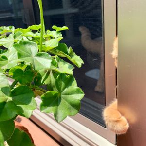 アイビーゼラニウム、 蕾が上がってきました♪ こらこら!勝手に網戸開けて お庭に出ないでください😅